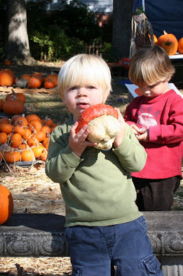 and an.... um... somewhat less predictable child. This child was INSISTENT that this was the pumpkin he wanted. And oddly enough, the funny looking one cost more because it was "original." Much like it's future owner.
